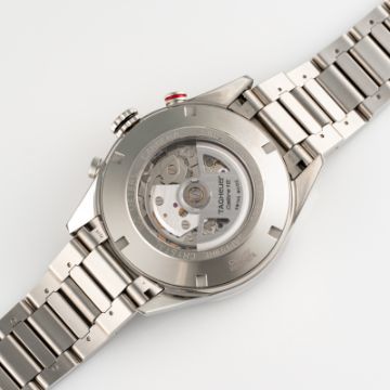 A GENTLEMAN'S SIZE STAINLESS STEEL TAG HEUER CARRERA CALIBRE 16 AUTOMATIC CHRONOGRAPH BRACELET WATCHDATED 2018, REF. CV2A1V WITH ITS ORIGINAL BOX, BOOKLET & WARRANTY CARD Movement: 25J, automatic, cal. 16, signed TAG HeuerCase: Diameter approx. 43mm, exhibition back, numbered, TAG Heuer crown and pushers.Bracelet: Original TAG Heuer bracelet numbered Y-L9 FAA097/3174Y.  CONDITION REPORTDial: Original dial in excellent condition. Movement: Running & functioning at present, timekeeping and accuracy cannot be guaranteed. Case: In excellent condition, with some light scratches due to general use. Strap/Bracelet: In very good condition with light scratches due to wear.
