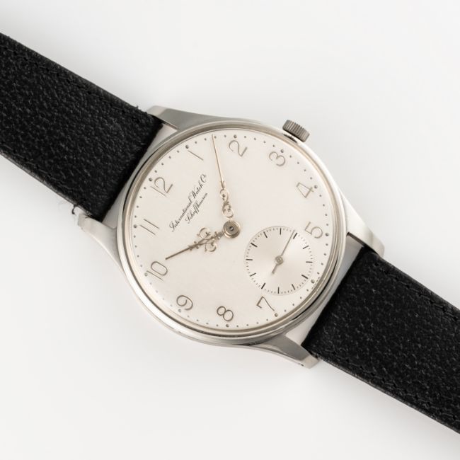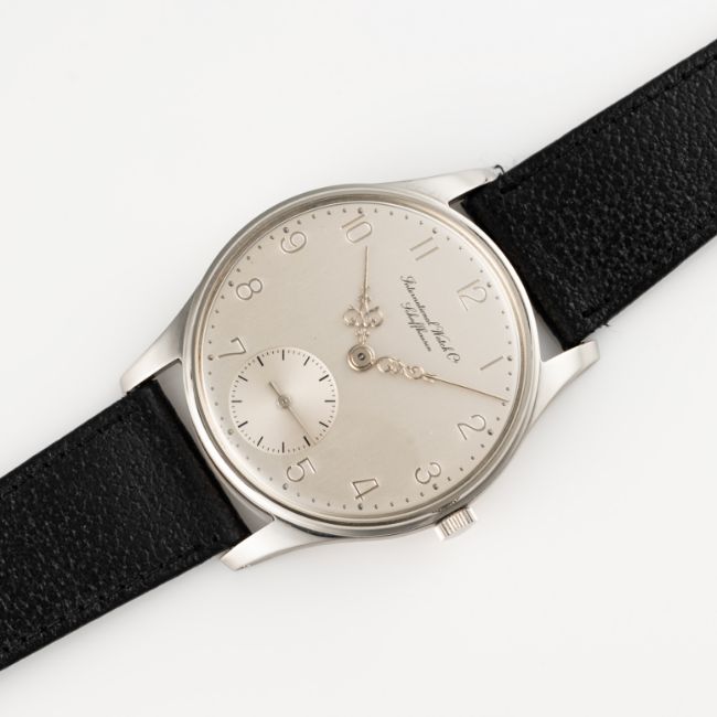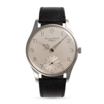 A VERY RARE GENTLEMAN'S OVERSIZED STAINLESS STEEL IWC PORTUGIESER "GERMAN EDITION" WRIST WATCH DATED 1981, REF. 325 THIRD SERIES KNOWN AS THE "MISSING LINK", WITH LOUIS 14TH STYLE HANDS, ACCOMPANIED BY ITS ORIGINAL BOX, GUARANTEE PAPERWORK, BOOKLETS & ARCHIVE CERTIFICATE, ORIGINALLY SOLD IN FRANKFURT Movement: 19J, manual wind, cal. 982, signed International Watch Co., numbered 2,28x,xxx.Case: Diameter approx. 41.5mm, snap back, signed International Watch Co., numbered, unsigned crown.Strap: Original IWC leather strap & pin buckle. CONDITION REPORTDial: Original dial in excellent condition.Movement: Running & functioning at present, timekeeping and accuracy cannot be guaranteed.Case: In excellent condition, with some light scratches due to occasional use.Strap/Bracelet: In very good condition.