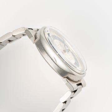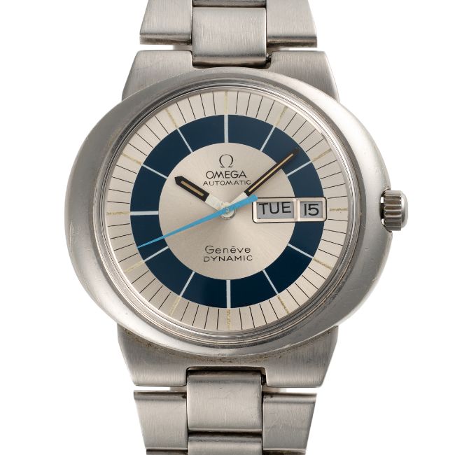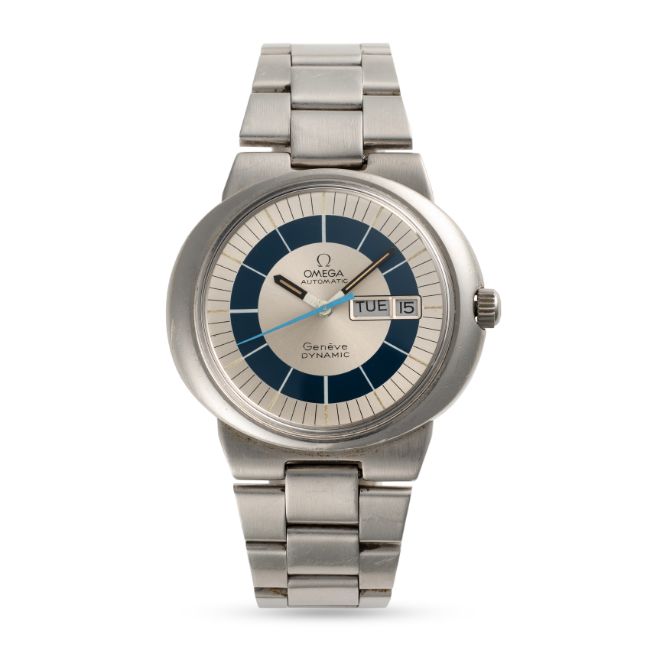 A GENTLEMAN'S STAINLESS SIZE STEEL OMEGA GENEVE DYNAMIC AUTOMATIC DAY DATE BRACELET WATCH CIRCA 1970s, WITH SUNBURST SILVER & BLUE DIAL Movement: Automatic, signed Omega, numbered.Case: Width approx. 41mm, signed Omega Watch Co, Omega crown.Bracelet: Orignal omega bracelet numbered 1153/138. CONDITION REPORTDial: Original dial in very good condition with very small signs of age.Movement: Running & functioning at present, timekeeping and accuracy cannot be guaranteed.Case: In good condition, with some scratches and wear due to general use.Strap/Bracelet: In good condition, with some scratches and wear sue to general use.