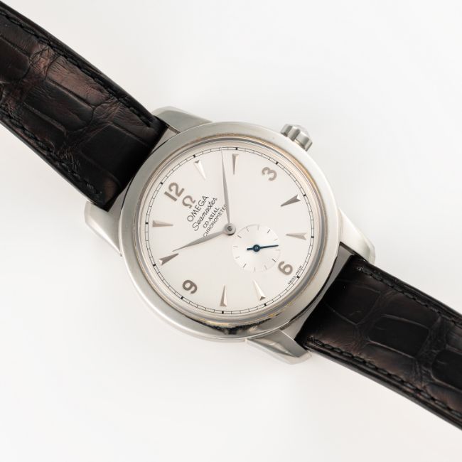 A GENTLEMAN'S SIZE STAINLESS STEEL OMEGA SEAMASTER CO AXIAL CHRONOMETER WRIST WATCH DATED 2012, REF 52223392002001, 1948 LONDON OLYMPIC LIMITED EDITION, ACCOMPANIED BY THE ORIGINAL BOX, BOOKLET & WARRANTY CARDSMovement: Automatic, Co-Axial Chronometer, cal. 2202, signed Omega, numbered.Case: Diameter approx. 39mm, screw back case, London Olympic logo, signed Omega, 17xx of 1948, numbered.Strap: Omega strap and pin buckle.  CONDITION REPORTDial: Original dial in excellent condition. Movement: Running & functioning at present, timekeeping and accuracy cannot be guaranteed. Case: In very good condition, with some light scratches and wear due to general use. Strap/Bracelet: In very good condition.