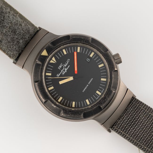 A RARE GENTLEMAN'S TITANIUM GERMAN MILITARY IWC PORSCHE DESIGN OCEAN 2000 AUTOMATIC BUND DIVERS WRIST WATCH
