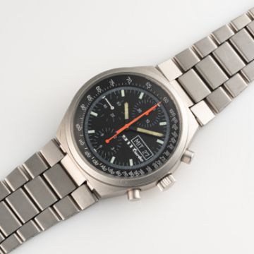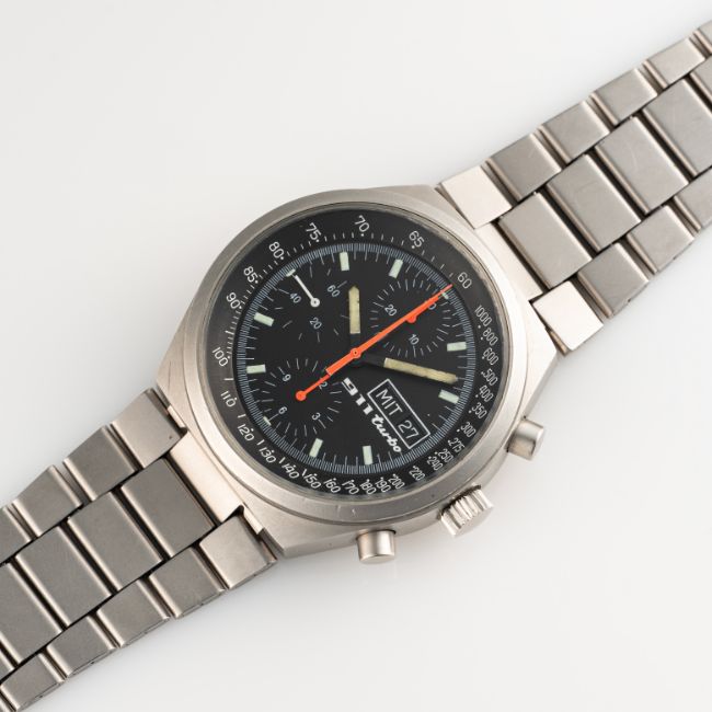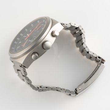 A RARE GENTLEMAN'S SIZE STAINLESS STEEL PORSCHE 911 TURBO CHRONOGRAPH BRACELET WATCH CIRCA 1983, REF. 7000Movement: 17J, automatic, Valjoux cal. 7750.Case: Diameter approx. 41mm, screw back case.Bracelet: Original Expandro (Made in German) stainless steel bracelet. CONDITION REPORTDial: Original dial in excellent condition.Movement: Running & functioning at present, timekeeping and accuracy cannot be guaranteed.Case: In very good condition, with some scratches and wear due to general use.Strap/Bracelet: In very good condition, with some scratches and wear die to general use.