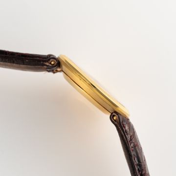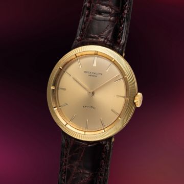 A RARE 18K SOLID GOLD PATEK PHILIPPE "DISCO VOLANTE" WRIST WATCH CIRCA 1960s REF. 3457, ORIGINALLY SOLD BY ITALIAN RETAILER TRUCCHI WITH CO-SIGNED DIALMovement: 18J, manual wind, cal. 8-85, signed Patek Philippe, numbered 85x,xxx.Case: Diameter approx. 28mm, finely flutted bezel, snap back, signed Patek Philippe, numbered 42x,xxx, 18k hallmarks, Patek Philippe crown.Strap: Leather. CONDITION REPORTDial: Original dial in excellent condition.Movement: Running & functioning at present, timekeeping and accuracy cannot be guaranteed.Case: In very good condition, with some light scratches and wear due to general use.Strap/Bracelet: In good condition.
