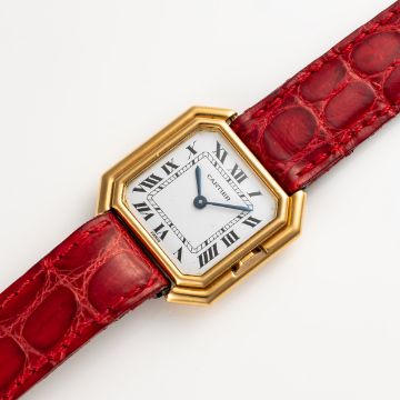 A GENTLEMAN'S SIZE 18K SOLID GOLD CARTIER PARIS CEINTURE WRIST WATCHCIRCA 1970s, REF. 78099  Movement: 17J, manual wind, signed Cartier.Case: Width approx. 27mm, signed Cartier Paris, numbered, 18k hallmarks, original crown. Strap: Leather strap with gold plated Cartier pin buckle. CONDITION REPORTDial: Original dial in excellent condition.Movement: Running & functioning at present, timekeeping and accuracy cannot be guaranteed.Case: In good condition, with some wear due to general use.Strap/Bracelet: In good condition, deployment clasp in very good condition.