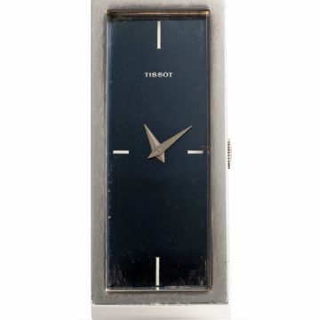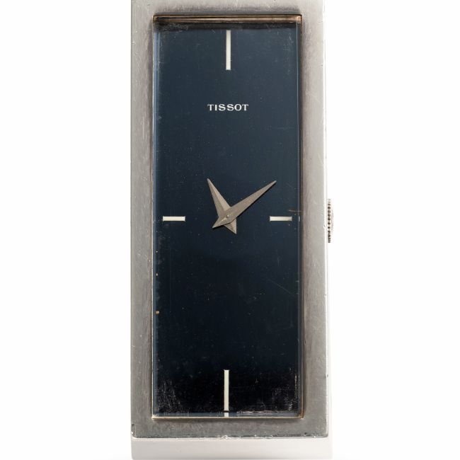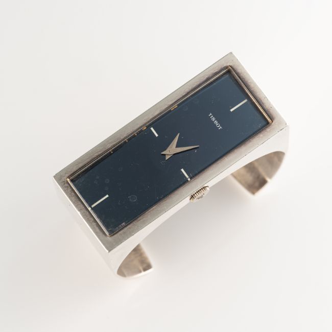 A LARGE SOLID SILVER TISSOT CUFF BRACELET WATCHCIRCA 1970s, REF. 10572 WITH BLUE MIRROR DIALMovement: 17J, manual wind, cal. 2401, signed Tissot, numbered 17,7xx,xxxCase: Measures approx. 56.4mm by 24.7mm, signed Tissot, silver hallmarks, Tissot crown.Bracelet: Original solid silver cuff. CONDITION REPORTDial: Original dial in very good condition, showing small signs of age.Movement: Running & functioning at present, timekeeping and accuracy cannot be guaranteed.Case: In very good condition, with some scratches and wear due to general use.Strap/Bracelet: In very good condition.