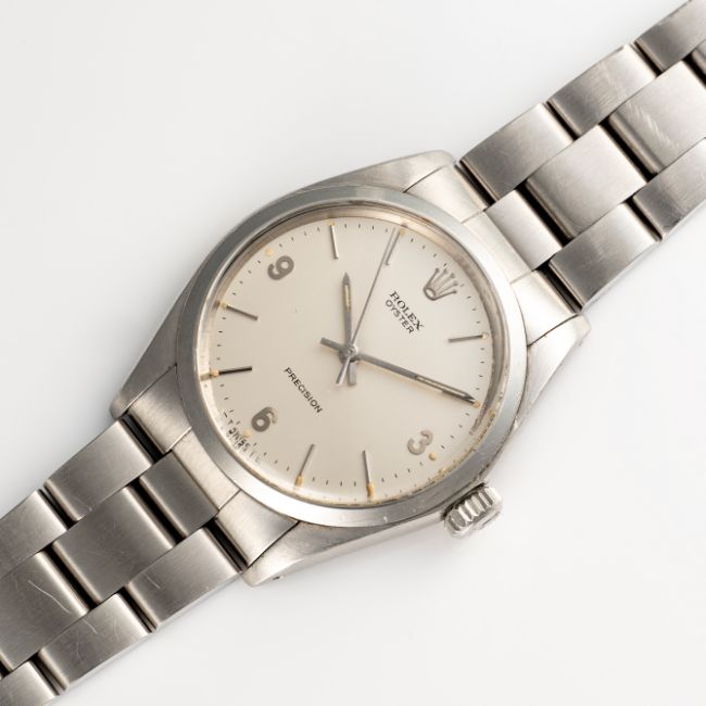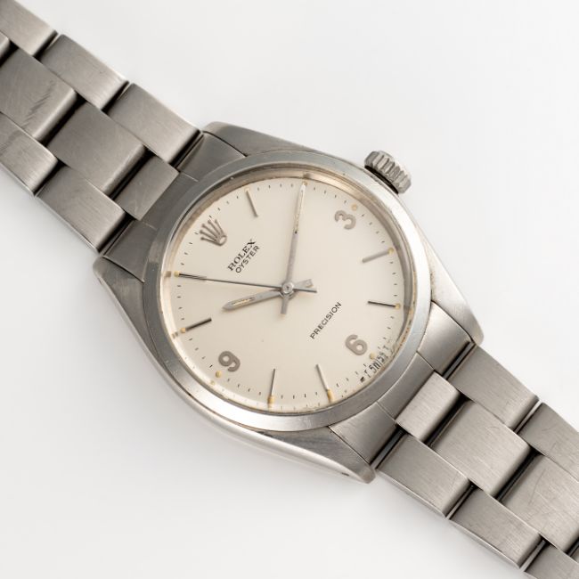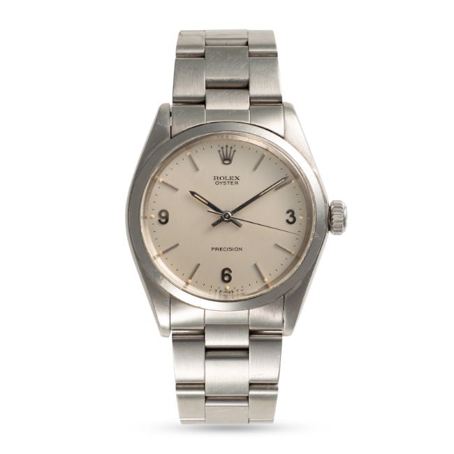 A RARE GENTLEMAN'S SIZE STAINLESS STEEL ROLEX OYSTER PRECISION BRACELET WATCHDATED 1971, REF. 6426 WITH SILVER 3-6-9 "EXPLORER" TYPE DIALMovement: 17J, manual wind, cal. RB 1225, signed Montres Rolex S.A..Case: Diameter approx. 35mm, Oyster case, signed Montres Rolex S.A., dated. IV.70, numbered 2.6xx.xxx, Rolex crown.Bracelet: Rolex Jubilee bracelet, numbered N12/78350/19. CONDITION REPORTDial: Original dial in excellent condition. Movement: Running & functioning at present, timekeeping and accuracy cannot be guaranteed. Case: In very good condition, with some light scratches and wear due to general use, case back inscription. Strap/Bracelet: In very good condition with some surface scratches.