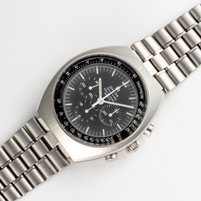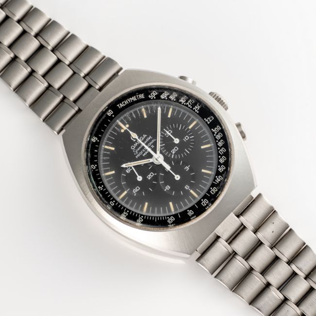 A GENTLEMAN'S SIZE STAINLESS STEEL OMEGA SPEEDMASTER MARK II CHRONOGRAPH BRACELET WATCH CIRCA 1970, REF. 145.014Movement: 17J, manual wind, cal. 861, signed Omega Watch Co, numbered.Case: Width approx. 41mm, screw back with embossed Speedmaster emblem, signed Omega Watch Co, numbered. 28,4xx.xxx, Omega crown.Bracelet: Omega bracelet numbered 11/1159/154. CONDITION REPORTDial: Original dial in excellent condition.Movement: Running & functioning at present, timekeeping and accuracy cannot be guaranteed.Case: In good condition, with some scratches and wear due to general use.Strap/Bracelet: In very good condition with some light surface scratches.