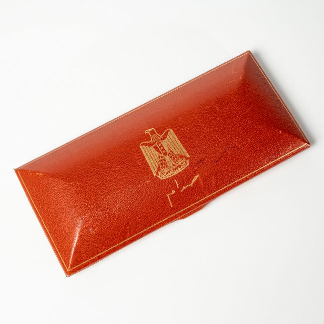 A RARE PATEK PHILIPPE PRESENTATIONAL WATCH BOX CIRCA 1980s, WITH IRAQI NATIONAL EMBLEM  Measures 180mm by 80mm. CONDITION REPORTIn very good condition, small pen mark on the front.