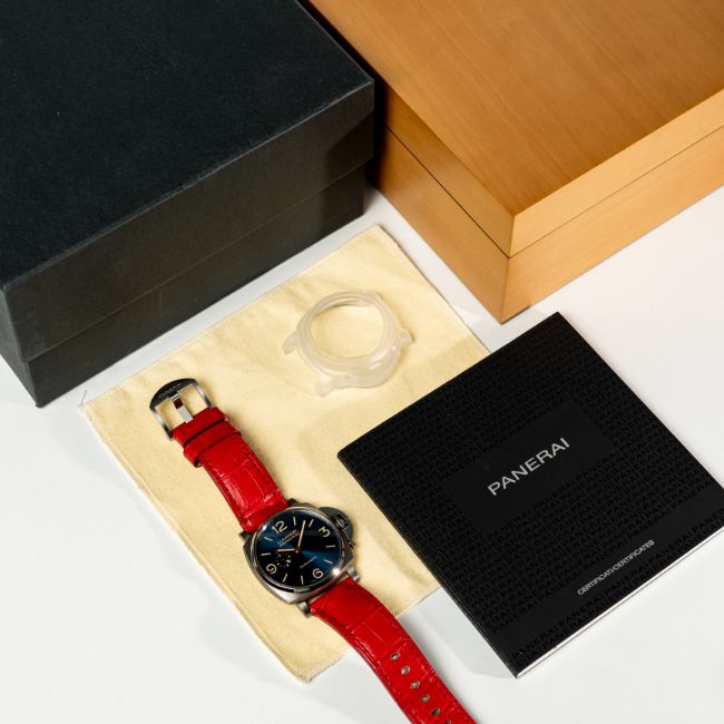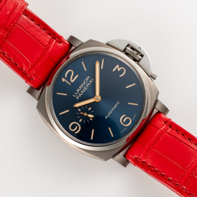 A GENTLEMAN'S SIZE TITANIUM PANERAI LUMINOR DUE AUTOMATIC WRIST WATCHDATED 2018, REF. PAM00728 LIMITED TO 500 PIECES, ACCOMPANIED BY THE ORIGINAL BOXES, GUARANTEE BOOKLET & BEZEL PROTECTOR Movement: 31J, automatic wind, cal. P 4000, signed Officine Panerai, numbered.Case: Width approx. 42mm, exhibition back, signed Officine Panerai, numbered, original crown.Strap: Panerai leather strap & titanium pin buckle. CONDITION REPORTDial: Original dial in excellent condition. Movement: Running & functioning at present, timekeeping and accuracy cannot be guaranteed. Case: In excellent condition, with some light scratches due to general use. Strap/Bracelet: In very good condition.