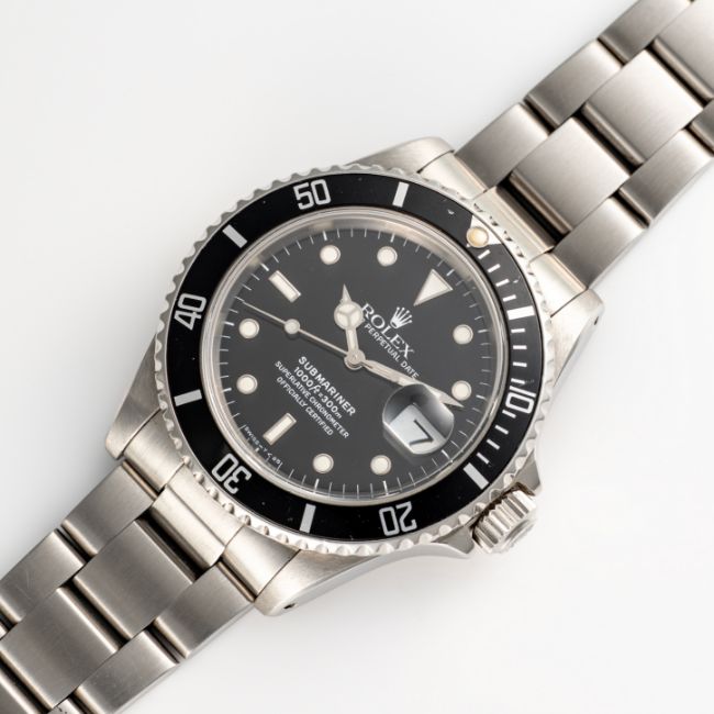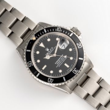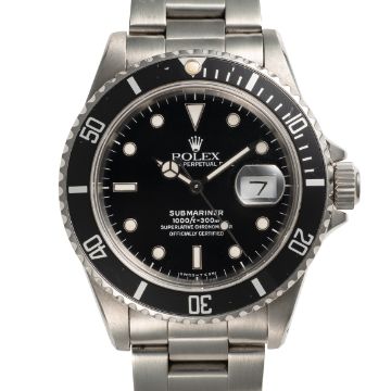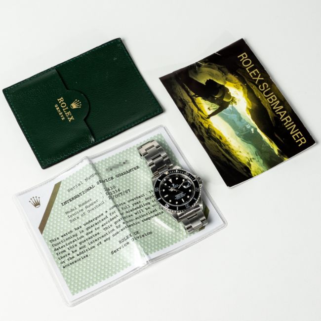 A GENTLEMAN'S SIZE STAINLESS STEEL ROLEX OYSTER PERPETUAL DATE SUBMARINER BRACELET WATCHCIRCA 1989, REF. 16610 EARLY L SERIES, SECOND YEAR OF PRODUCTION, ACCOMPANIED BY ROLEX SERVICE PAPERWORK FROM 2007 Movement: 31J, automatic chronometer, cal. 3135, signed Montres Rolex, numbered.Case: Diameter approx. 40mm, Oyster case, signed Montres Rolex S.A., L serial no.numbered, 60 minute rotating bezel, Rolex triplock crown.Bracelet: Original Rolex Oyster Submariner bracelet, numbered O8/93150/501B. CONDITION REPORTDial: Original dial in excellent condition. Movement: Running & functioning at present, timekeeping and accuracy cannot be guaranteed. Case: In very good condition, with some scratches due to general use. Strap/Bracelet: In good condition, with some wear between the links.