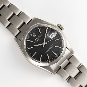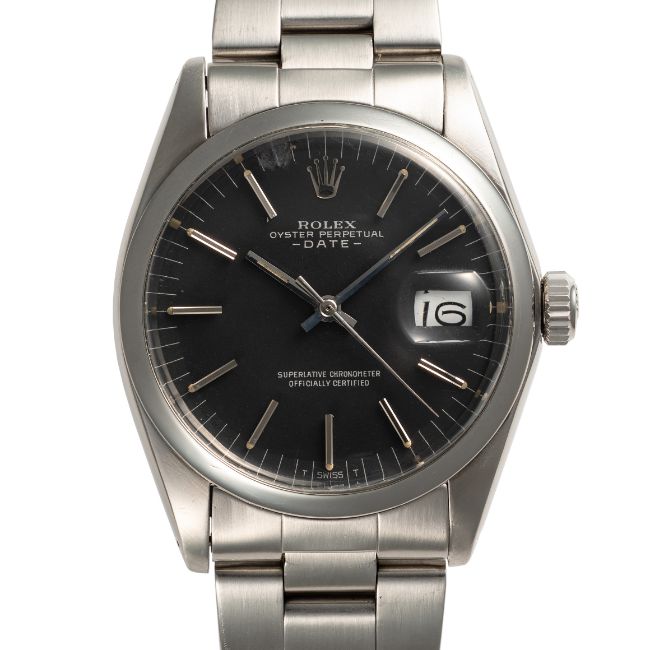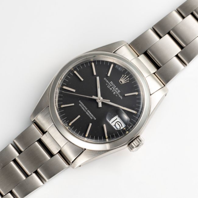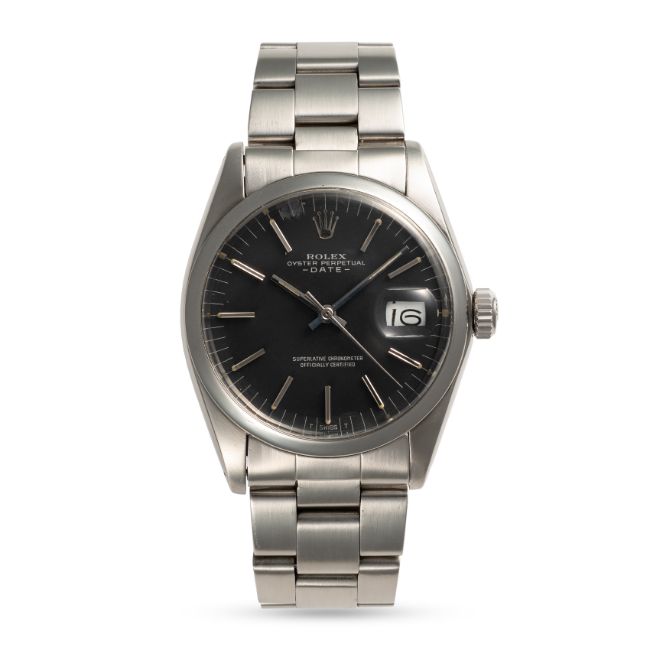 A GENTLEMAN'S SIZE STAINLESS STEEL ROLEX OYSTER PERPETUAL DATE BRACELET WATCHDATED 1965, REF. 1500 ACCOMPANIED BY A ROLEX BOX, ORIGINAL CHRONOMETER CERTIFICATE & GUARANTEE PAPERWORKMovement: 26J, automatic chronometer, cal. 1560, signed Montres Rolex S.A., numbered.Case: Diameter approx. 34mm, Oyster case, signed Montres Rolex S.A., case back dated I.65, serial no. 1,1xx,xxx, Rolex crown.Bracelet: Rolex Oyster bracelet numbered H/78350/557.  CONDITION REPORTDial: Original dial in good condition, a mark around the edge dial between 11/12 o'clock Movement: Running & functioning at present, timekeeping and accuracy cannot be guaranteed. Case: In very good condition, with some light scratches and wear due to general use. Strap/Bracelet: In very good condition with some surface scratches.