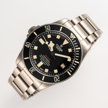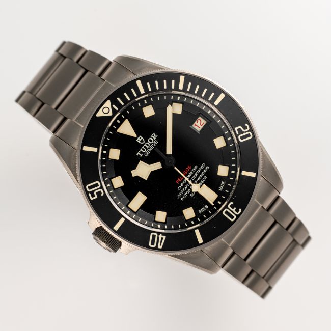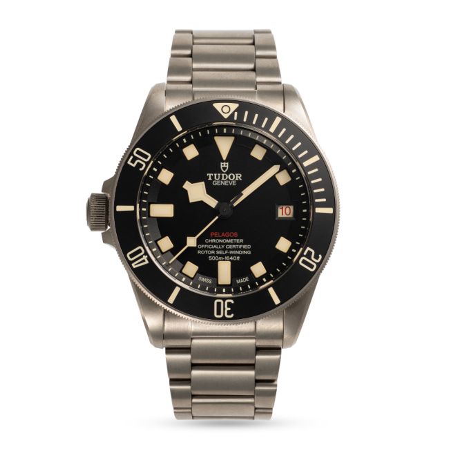 A GENTLEMAN'S SIZE TITANIUM TUDOR PELAGOS LHD BRACELET WATCHDATED 2017, REF. 25610TNL NUMBERED EDITION, ACCOMPANIED BY THE ORIGINAL BOX, BOOKLETS WARRANTY CARD & RUBBER STRAP Movement: Automatic chronometer, cal. MT5612, signed Tudor.Case: Diameter approx. 42mm, screw back case, signed Tudor, numbered, gas escape valve, 60 minute rotating bezel, original crown.Bracelet: Original Tudor Pelgaos titanium bracelet.   CONDITION REPORTDial: Original dial in excellent condition. Movement: Running & functioning at present, timekeeping and accuracy cannot be guaranteed. Case: In excellent condition, with some light scratches due to general use. Strap/Bracelet: In excellent condition with some surface scratches.